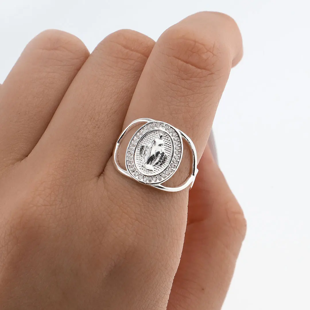 Luce radiante con este anillo de cristales cuidadosamente seleccionados. La plata de alta calidad complementa a la perfección los brillantes cristales, creando un efecto deslumbrante en tu mano. Con su diseño moderno y elegante, este anillo se convertirá en una pieza clave en tu colección de joyas.